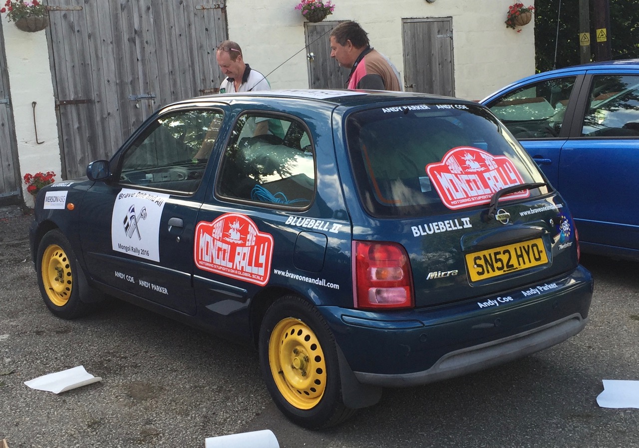 We met the Catalan Mongolian team today on the highway and pulled into a service station for a chat ranging from polotics to motorway tolls. We asked them why they had a Buff sticker on the side of their car. Apparently Buff come from Barcelona their home town and Buff did a special one with their team name on it. Andy piped up “I have a Muff sorry Buff so I feel I have been sponsored by them, I never take off my neck even at bedtime”. We were all mystified, so we just humoured him and carried on with the conversation.
